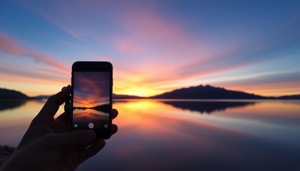 To capture stunning photo reflections with your smartphone, start by seeking out reflective surfaces like water, glass, and puddles. Experiment with camera angles to maximize mirror effects and create symmetry. In urban settings, use buildings and windows for unique compositions. Master exposure control to balance light and dark areas, and don't forget to edit your shots to enhance clarity and contrast. Try low-light scenes for dramatic results, and play with symmetry to elevate your images. Whether you're shooting serene lakes or city streets, these tips will help you transform ordinary scenes into extraordinary reflections. Dive deeper to reveal even more creative possibilities.