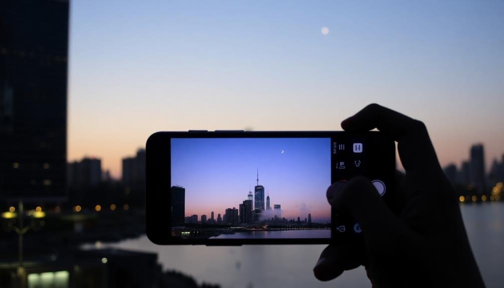 Steady hands are essential for capturing sharp night panoramas. When shooting in low light, even the slightest movement can result in blurry images. To stabilize your phone and guarantee crisp, clear panoramas, you'll need to employ some techniques and tools.